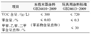 由于玩具直接與人體特別是兒童密切接觸,玩具涂料中有害物質(zhì)主要有重金屬類、鄰苯類增塑劑和有機(jī)溶劑等三大類,一旦其中有害物質(zhì)超標(biāo)將會(huì)影響到兒童身體健康。為確保兒童身體健康,我國(guó)首部《玩具用涂料中有害物質(zhì)限量》強(qiáng)制性國(guó)家標(biāo)準(zhǔn)GB24613-2009將于2010年10月1日起正式實(shí)施。由于水性木器涂料能夠做到不含鄰苯二甲酸酯、總鉛及可溶性重金屬符合標(biāo)準(zhǔn)要求,且VOC、苯系物含量遠(yuǎn)遠(yuǎn)低于GB24613-2009限量指標(biāo),2個(gè)標(biāo)準(zhǔn)對(duì)比見表2。