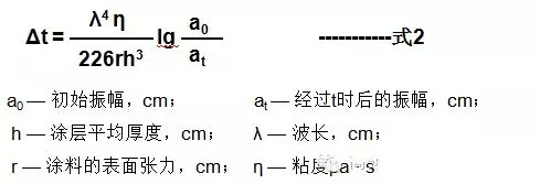 構成涂膜形態(tài)不規(guī)整有兩種原因,一是由涂裝工具產生的痕跡,如刷痕取決于鬃毛刷的類型,刷痕的深淺不一。滾痕取決于滾涂機和繞線棒,滾涂或刮涂產生的凹凸的狀態(tài)不等。涂膜的不規(guī)整度越大流平越困難。二是基材形狀造成的,基材表面是粗糙的要得到光滑平整的涂膜是比較困難的。找平的方法是刮胒子和厚涂底漆。遇到上述情況造成的表面流平問題,最好的辦法是保持涂料的高表面張力,增強基材潤濕鋪展能力,保持涂膜最佳極限厚度,采用良溶劑稀釋樹脂,并控制其揮發(fā)速度及平衡。可參考公式2。