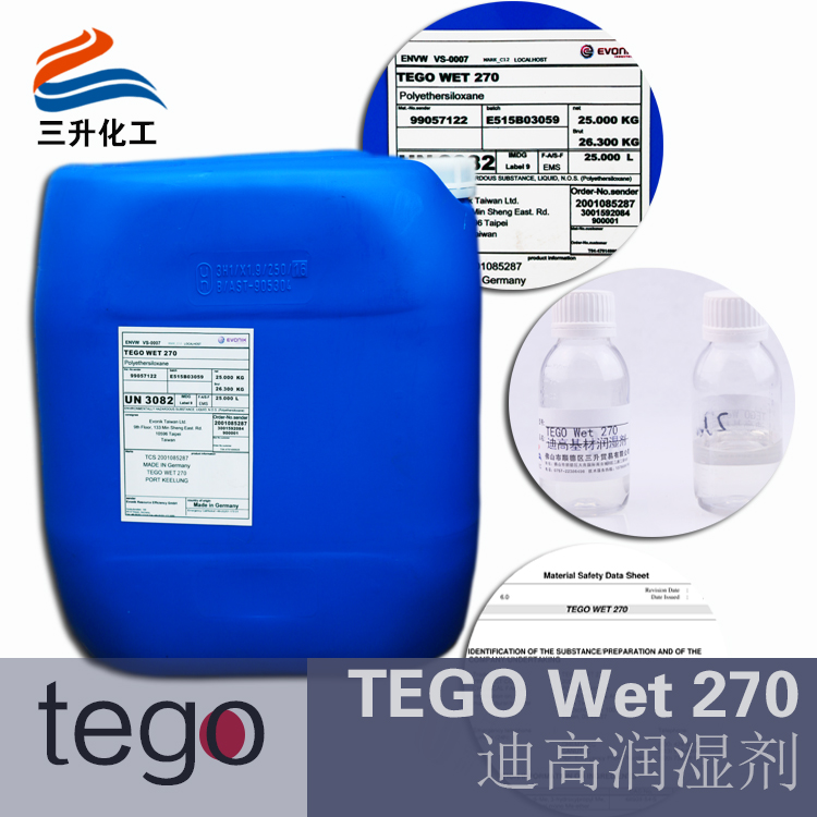 以下為三升貿(mào)易暢銷產(chǎn)品,贏創(chuàng)德固賽迪高助劑基材潤(rùn)濕劑的TEGO Wet 270用于水性基材潤(rùn)濕劑配方,也適用于輻射固化潤(rùn)濕劑,溶劑型潤(rùn)濕劑和無(wú)溶劑型潤(rùn)濕劑(雙組分)配方也可應(yīng)用。