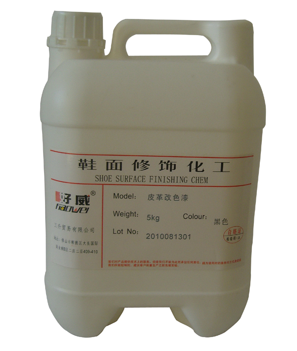 - 產(chǎn)品簡介:我們(廣東韶關(guān)好尓威化工有限公司)專業(yè)鑄造皮鞋面化工修飾劑和皮革表面處理劑。從開始的油性光亮劑、油墨皮革光油、皮革清潔劑、油性皮革改色漆,絨皮增艷劑、絨皮保養(yǎng)液、皮革消光劑、到如今水性環(huán)保產(chǎn)品的蠟水、蠟油、鞋乳、環(huán)保鞋乳、環(huán)保皮革改色漆、水性絨皮增艷劑、水性絨皮保養(yǎng)液等。好威8320全身臘水屬于特高光類臘水,成膜屬于偏軟,其突出優(yōu)點是:高亮度,綜合性能高