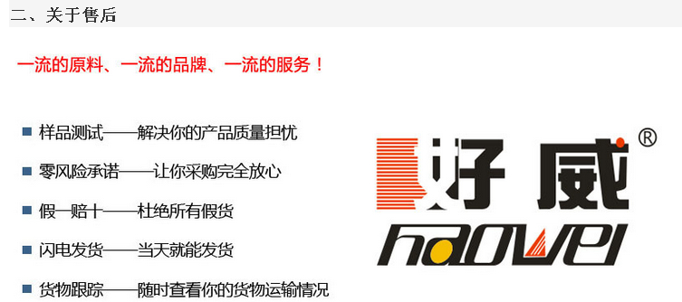 樣品發(fā)放說明:好威所有產(chǎn)品都可免費(fèi)提供樣品給客戶試用,快遞費(fèi)到付!廣東省外客戶常規(guī)發(fā)圓通快遞需要一周時(shí)間到達(dá)。省內(nèi)我們走全日通,正常情況下,如今日發(fā)次日能到達(dá)。